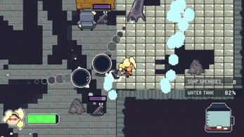 Equipped with a sledgehammer, industrial-grade soap grenades, and a weaponized firehouse with a water tank attached to her back, you play a Grise, a freelance house-flipper, gutting out homes filled with sentient monsters made of muck!